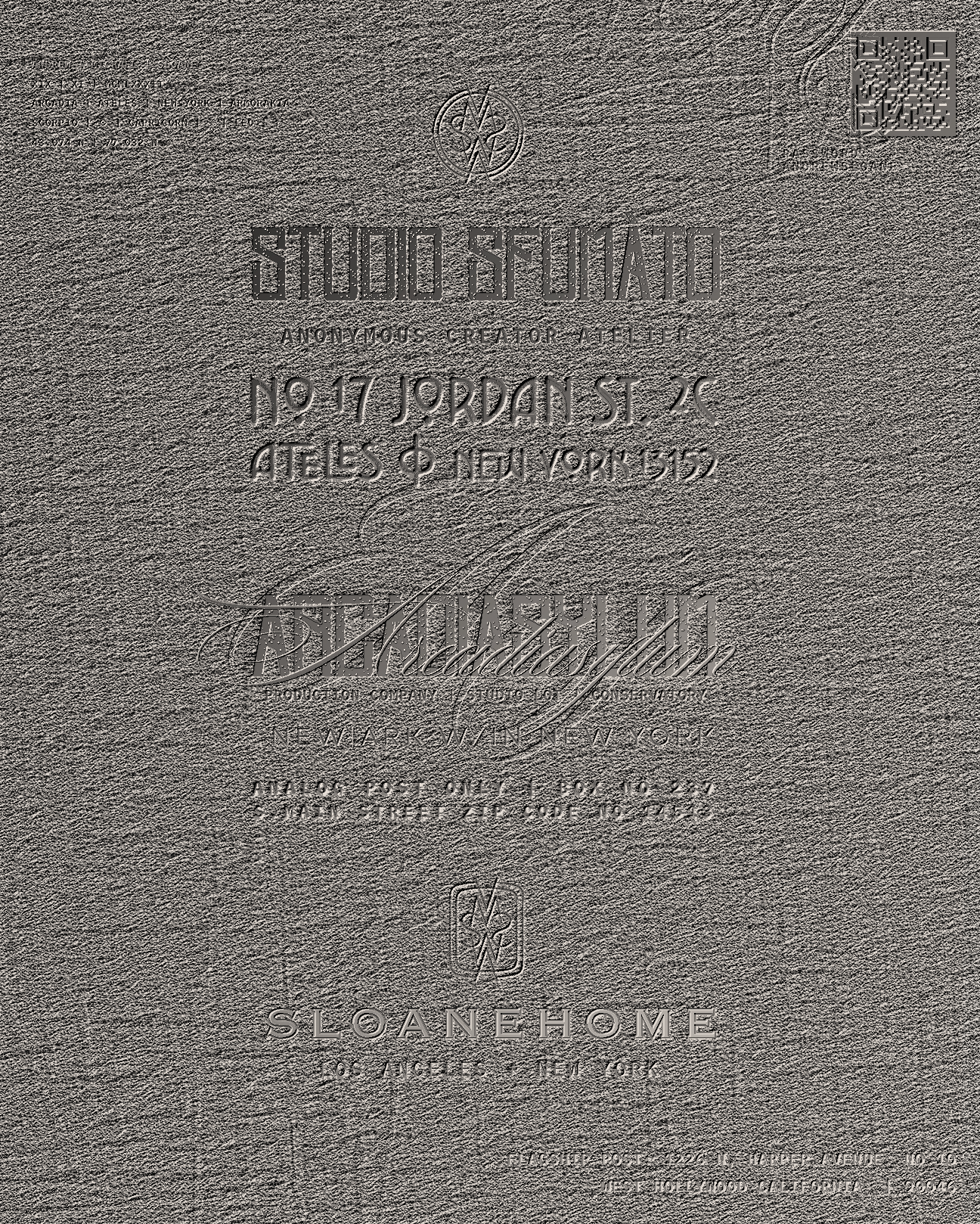 This spring, we will reveal Andrew’s transition into feature films, both independent and studio produced; a substack journal authored by Andrew himself, as well as a relaunch of andrewsloane.com as AMS. The moniker, sited in long form as ‘anonymous,’ denotes works that have undergone creative direction through Andrews instruction by a team of apprentice participants from the central NY region. Any such works that link direct to CANVA, are contemporaneously in process by Andrew’s own hand to be observed in real time.
